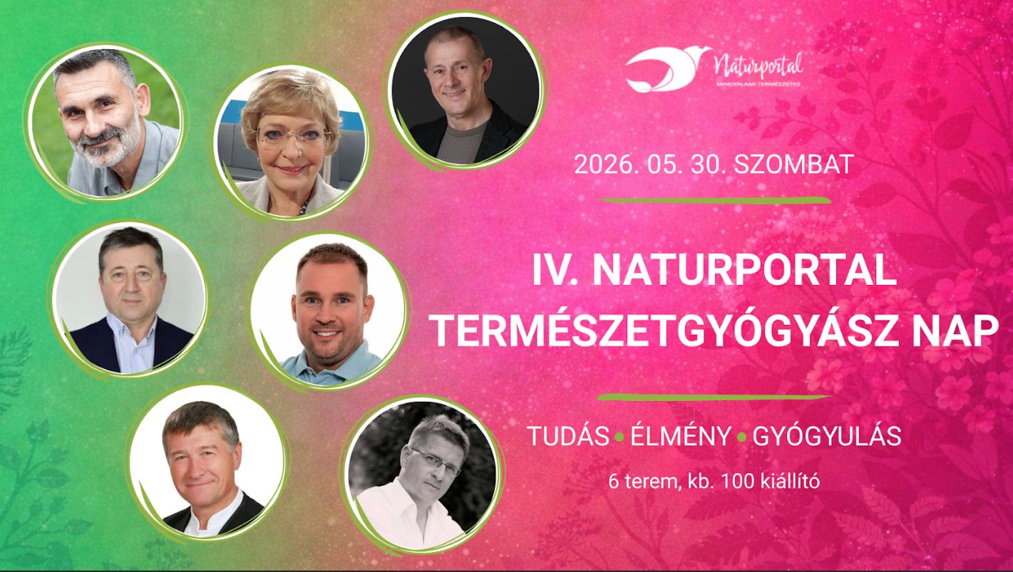 Tarts velünk 2026. május 30-án szombaton Budapesten az ELTE Egyetemi Konferenciaközpontban (1117 Budapest, Pázmány Péter sétány 1/A) a IV. Naturportal Természetgyógyász Napon!